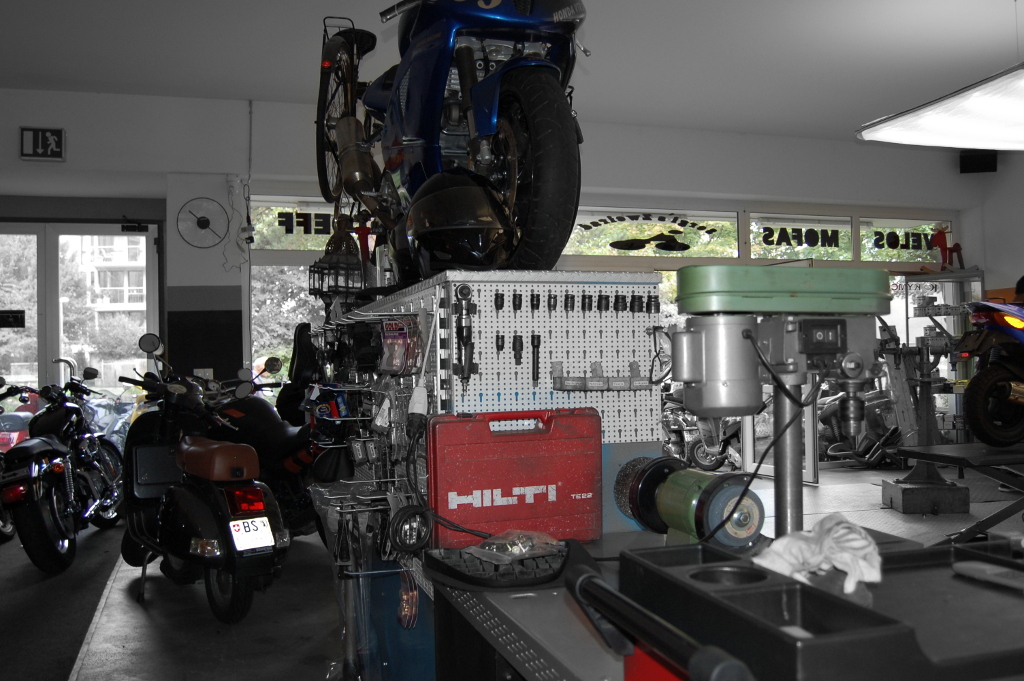 In unserer reichaltigen Werkstatt koennen wir jegliche Arbeiten an Ihrem Zweirad vornehmen.